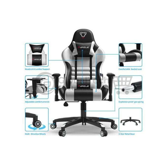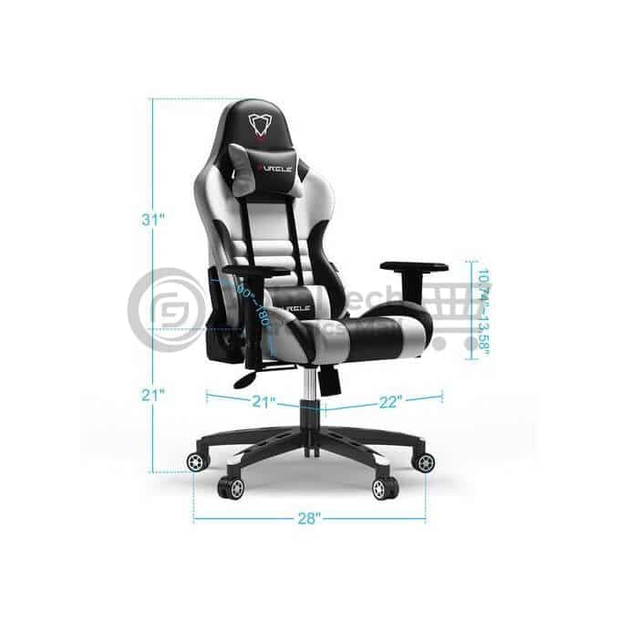 Crafted with high-density foam and durable PU leather, the chair includes a removable headrest pillow and adjustable lumbar cushion to promote proper posture and relieve pressure on your back and neck.